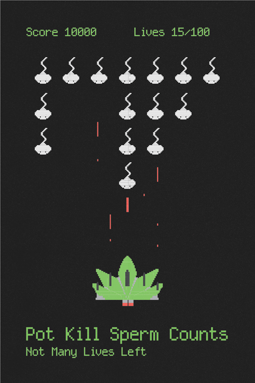 Project Title: Poster series of two, negative aspect of Marijuana. Description: A poster design to convey the idea of smoking marijuana can reduce man’s sperm count. Software: Adobe Illustrator Dimension: 20” x 30”